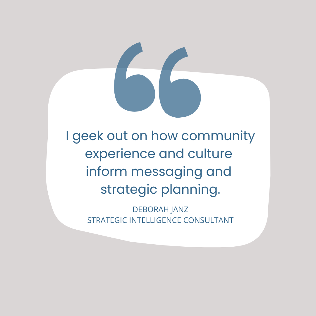 Deborah Janz is a strategic intelligence consultant who works with senior leadership teams to understand where institutional values, promises, and lived experience fall out of alignment, and what that misalignment requires leaders to decide.